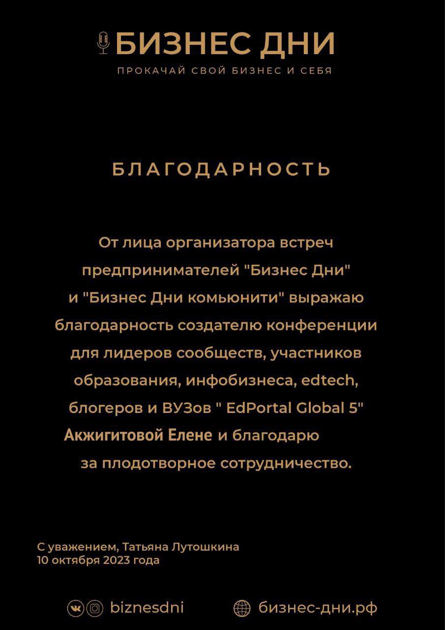7. Срок действия согласия: Достижение целей обработки, утрата необходимости в достижении целей обработки, истечение сроков хранения, отзыв субъектом персональных данных согласия на обработку своих персональных данных, прекращение Акжигитовой Еленой Анатольевной деятельности в качестве индивидуального предпринимателя.